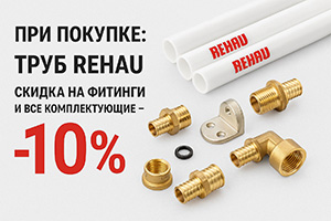 При покупке: труб REHAU скидка на фитинги и все комплектующие - 10%