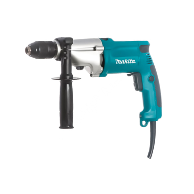 Двухскоростная ударная дрель Makita HP 2051 F имеет два режима работы - сверление и сверление с ударом. Двухскоростной редуктор делает работу с инструментом более удобной и качественной. Функция реверса останавливает вращение сверла при его заклинивании.